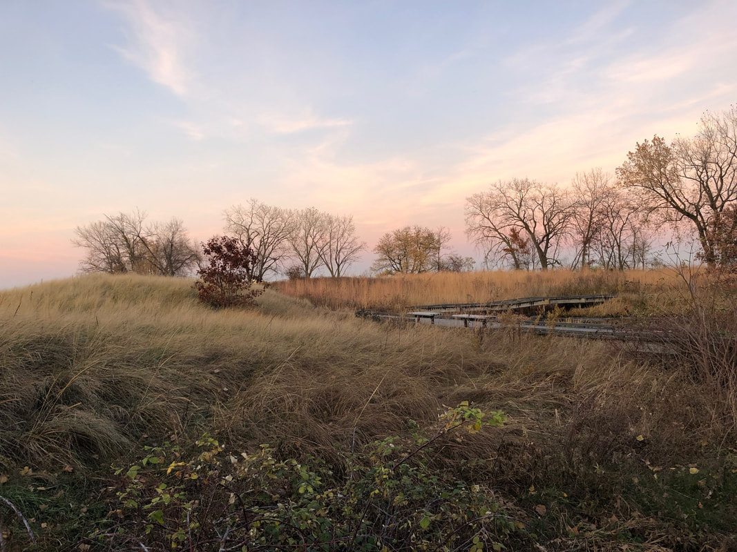 The South Shore Nature Sanctuary is located on the traditional unceded homelands of the Council of the Three Fires: the Ojibwe, Odawa, and Potawatomi Nations. Many other tribes such as the Miami, Ho-Chunk, Menominee, Sac, and Fox also called this area home. The region has long been a center for Indigenous people to gather, trade, and maintain kinship ties. Today, one of the largest urban Native American communities in the United States resides in Chicago. Members of this community continue to contribute to the life of this city and to celebrate their heritage, practice traditions, and care for the land and waterways. Volunteer stewards at the South Shore Nature Sanctuary strive to continue native populations' respect for land through their work in this space. This takes the form of teaching and advocating for practices like native seed collection and propagation, the protection of native flora and fauna, and support for the work of local native community groups.